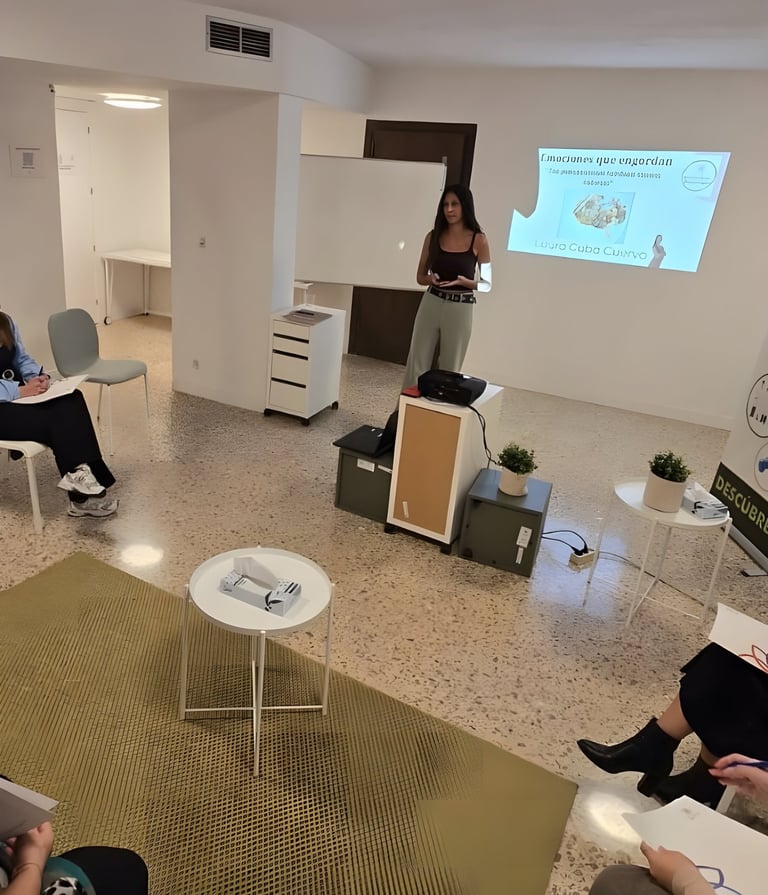 Además de la intervención individual, realizo talleres y actividades formativas en centros educativos, asociaciones y empresas sobre bienestar emocional, relación con la comida, autoestima, gestión del estrés y prevención de trastornos de la conducta alimentaria. Creo firmemente que pedir ayuda es un acto de valentía, y que cada proceso terapéutico es una oportunidad para comprenderse mejor y construir cambios reales y sostenibles.